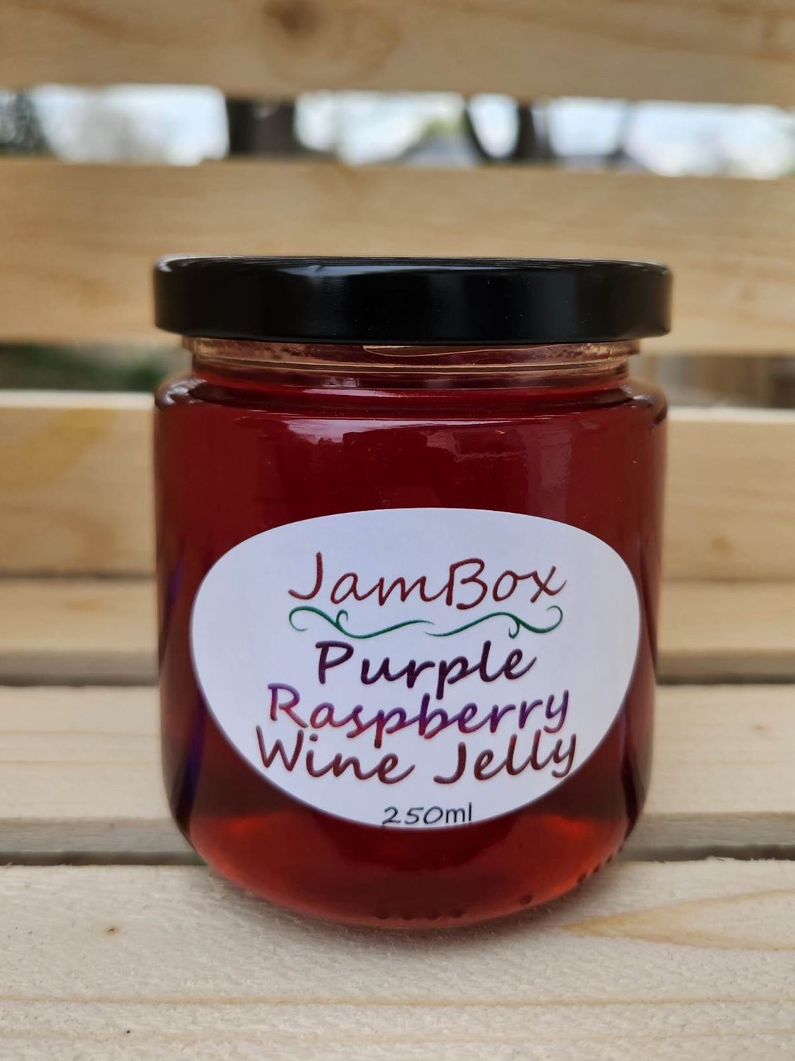 Purple Raspberry Wine Jelly. Made from Ontario grown purple raspberries. Purple raspberries are a species of raspberry that is a little sweeter and richer in flavour than a red raspberry. We hope to have some of these delicious berries to add to our jam menu this season as well as golden and black raspberries as well 🙂